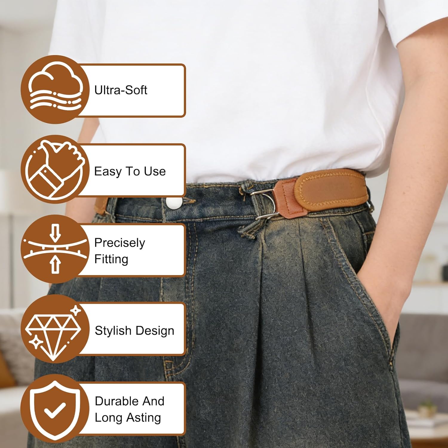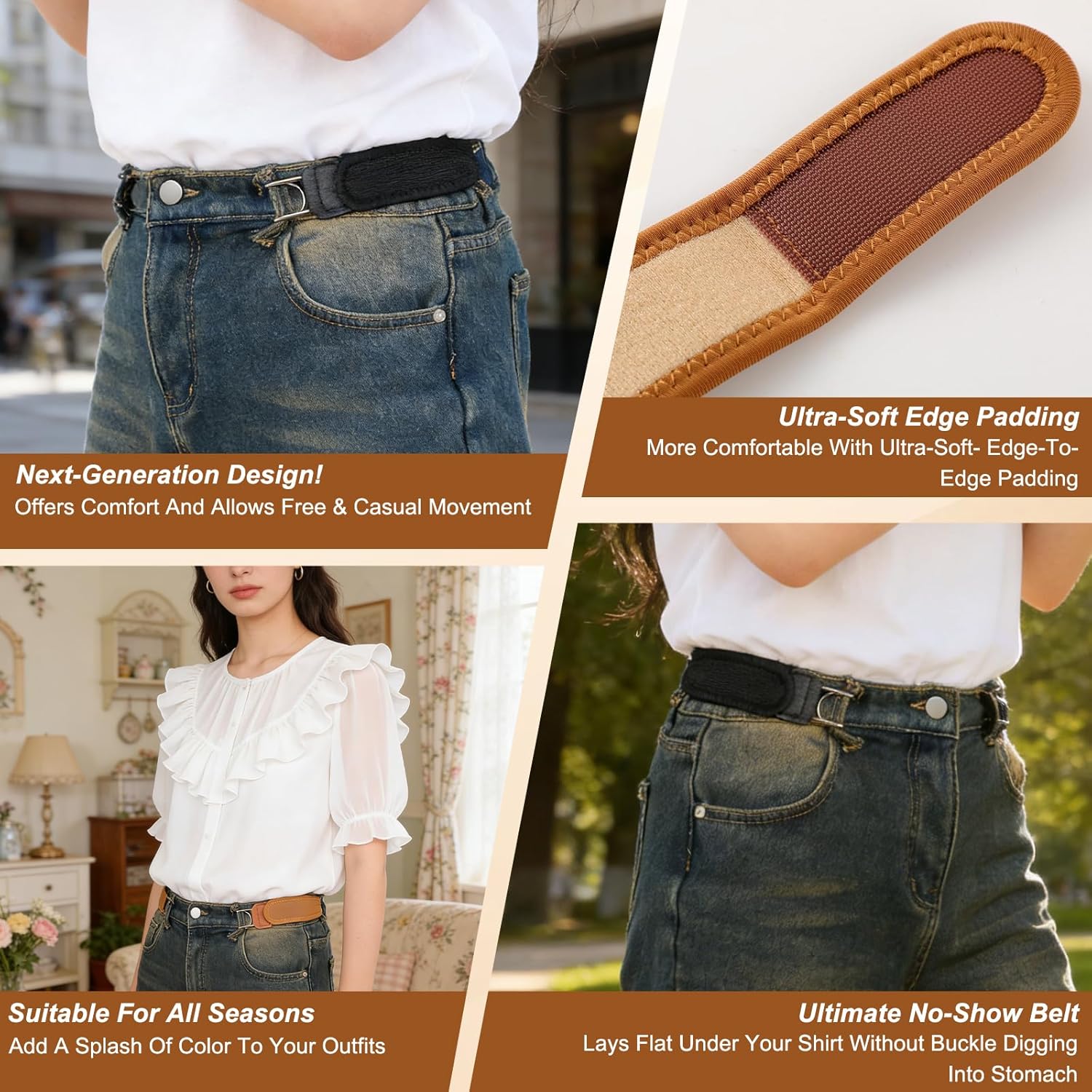 Tired of uncomfortable belt buckles digging into your waist? Our 4PCS Buckless Belt Loops for Men and Women set redefines what a belt should be: comfortable, adjustable, invisible, and versatile. Designed for the modern man who values both style and function, this collection includes 2 Black and 2 Brown belts to match every outfit and occasion.