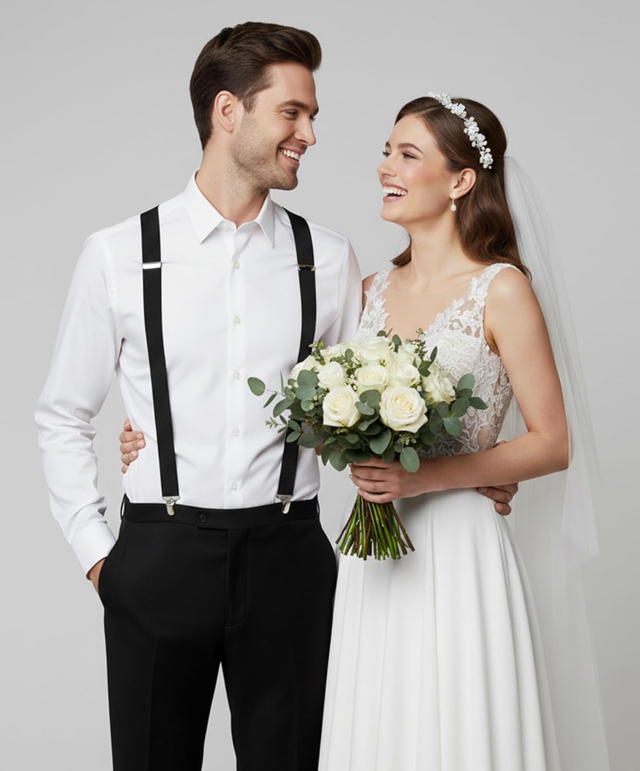 Dibi Suspenders for Men – Adjustable X back Suspender with 4 Strong Clips