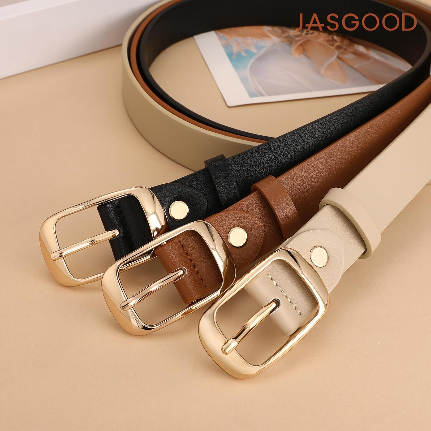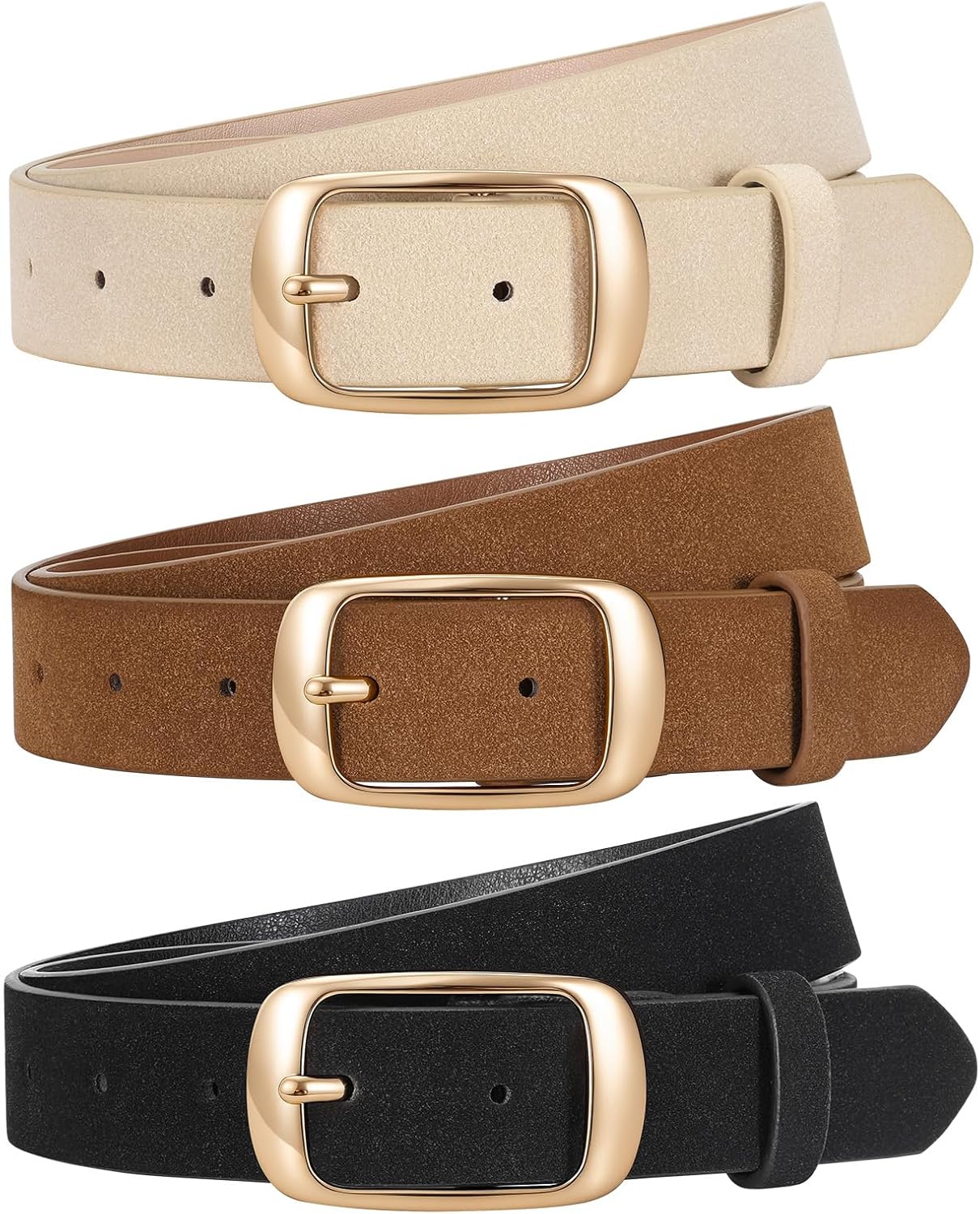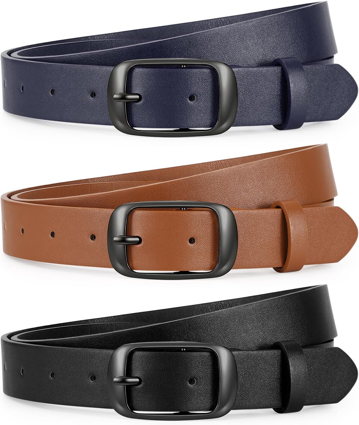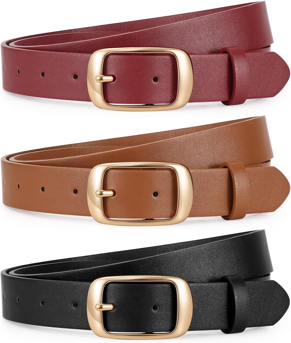 JASGOOD 3 PACK Women Belts for Jeans Pants Dresses Fashion Leather Belt with Solid Pin Buckle