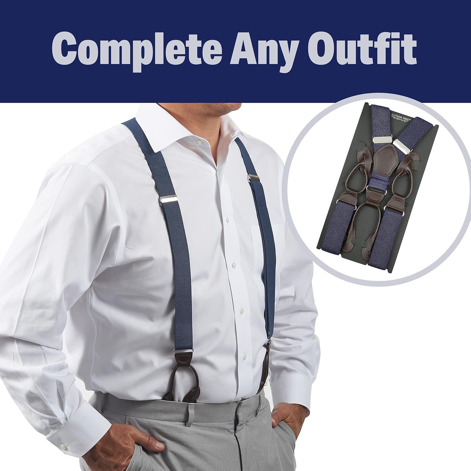 LUTHER PIKE SEATTLE Suspenders for Men – 1.25″ Y-Back Men’s Suspenders