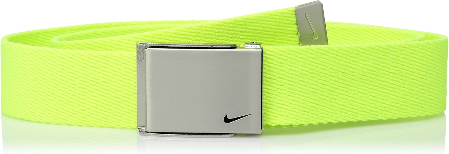 Nike young athletes single web belt, brushed nickel plaque buckle with ‘swoosh’ logo, Nike acufit technology allows belt strap to be cut to the perfect length, 32mm width.